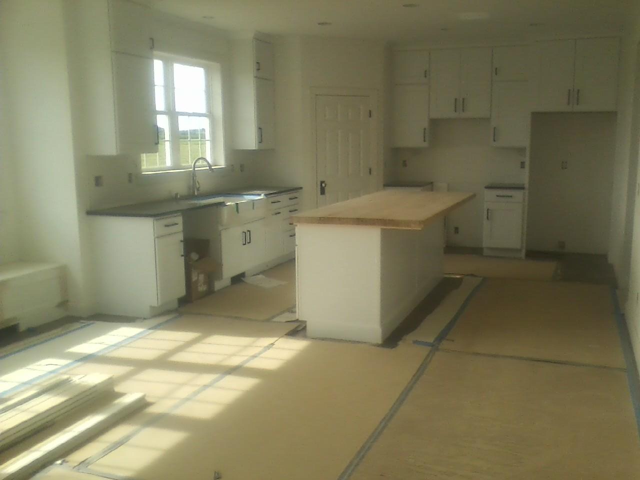 Joe cut and sanded a bowling alley lane we had bought from Badger Bowl when they were getting new lanes. It is pure maple, and is like a butcher’s block 🙂
